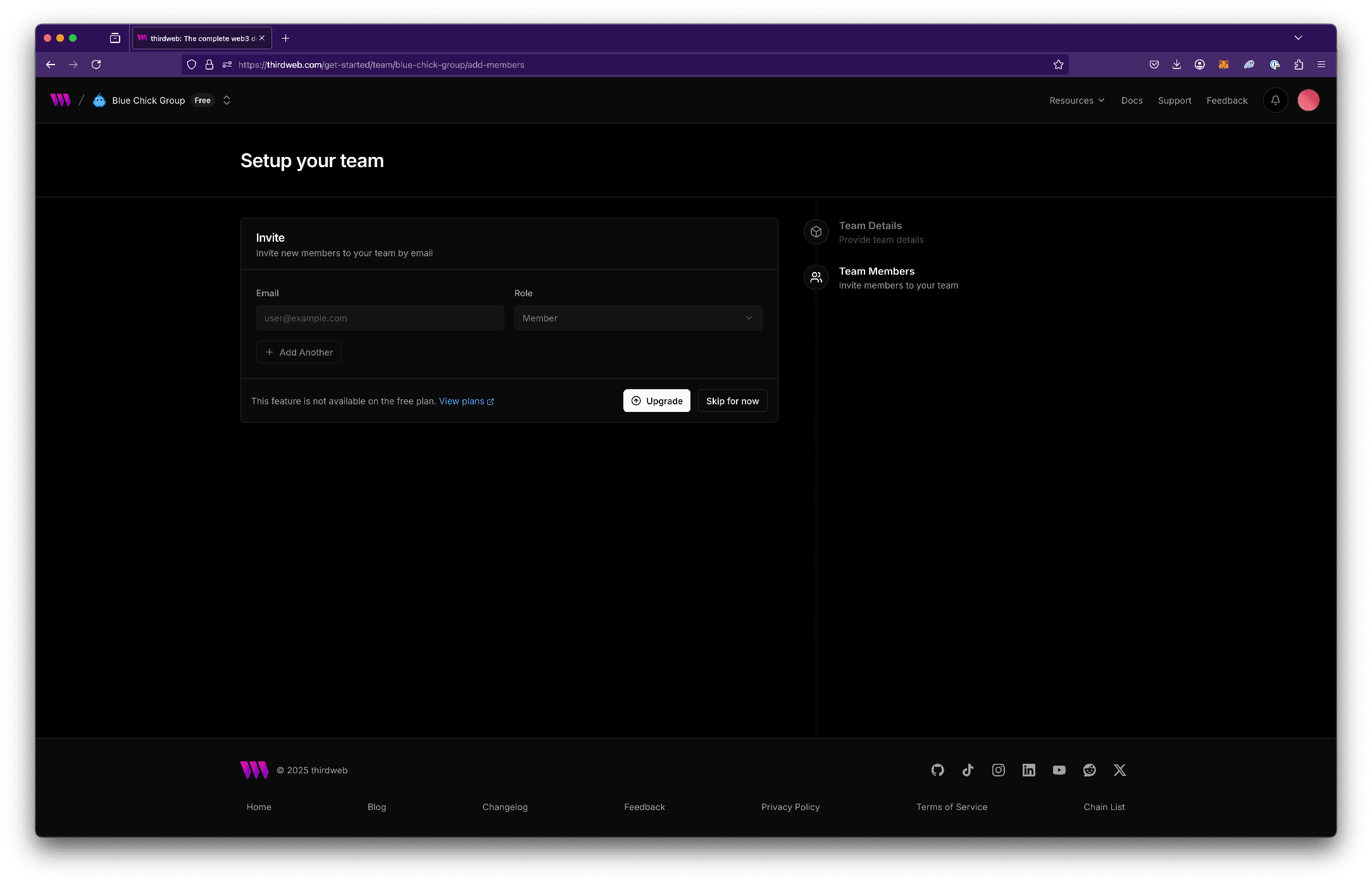 Invite team members to collaborate on projects by entering their email addresses. This step does require you to provide billing information so you may opt to do this later.